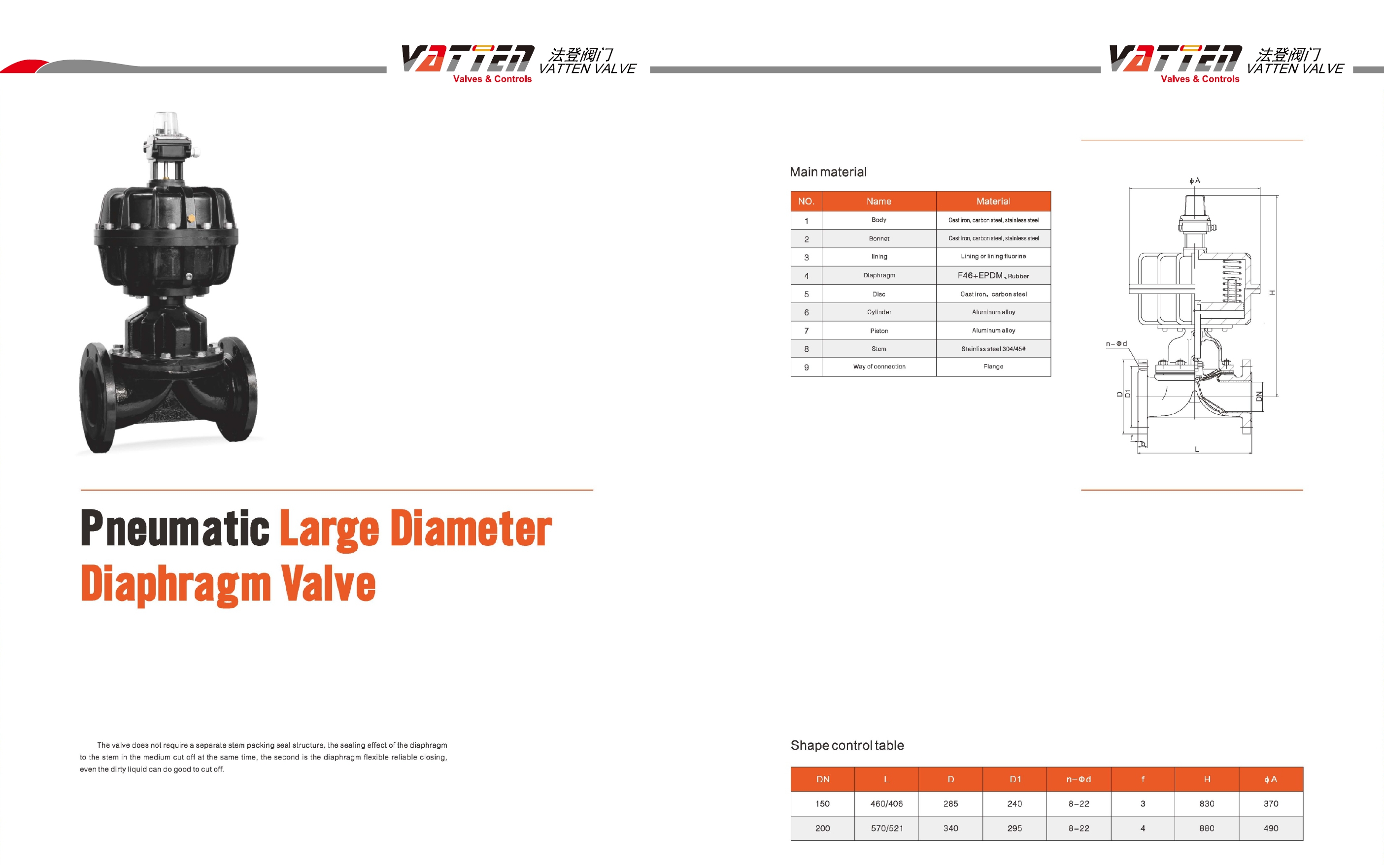 隔膜閥通常用彈性隔膜作啟閉件封閉流道、截斷流體、并將閥體內(nèi)腔和閥蓋內(nèi)腔隔開的截止閥。隔膜常用橡膠、塑料等彈性、耐腐蝕、非滲透性材料制成。 閥體多用塑料、金屬或者金屬襯里材質(zhì)。結(jié)構(gòu)簡單、密封和防腐性能較好,流體阻力小。可用于低壓、低溫、腐蝕性較強和含懸浮物質(zhì)的介質(zhì)。按結(jié)構(gòu)形式分有屋脊式(堰式)、直通式等。按驅(qū)動方式分有手動、氣動。通常主要做切斷使用,也可以通過加裝定位器實現(xiàn)調(diào)節(jié)功能。